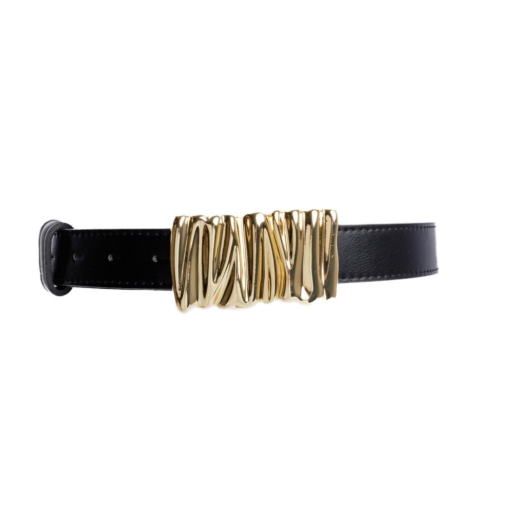 Vegan Leather Solid Color With Oval Embossed Buckle Belt