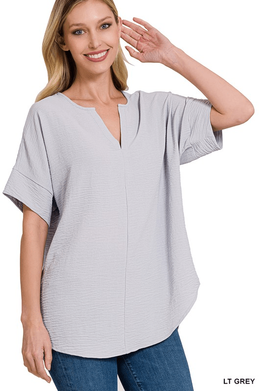 The Blessed Assurance Top offers a unique blend of comfort and style with its woven airflow design. The split neck and short sleeves add a touch of sophistication. Measuring 29" in length and with a bust of 45", it's perfect for any body type. Made with 100% polyester for a lightweight and breathable feel. Elevate your wardrobe with this must-have top!