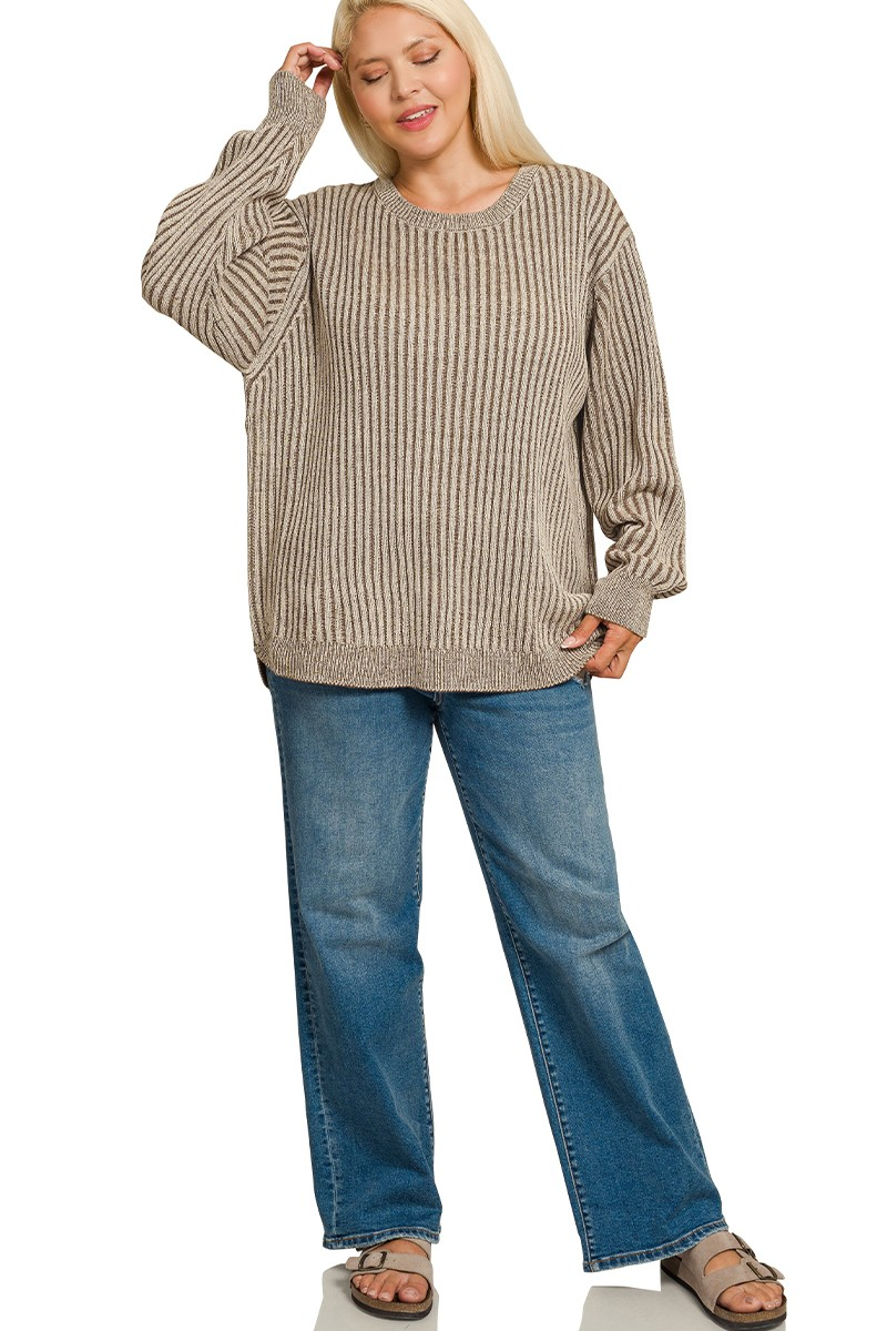 PLUS CURVED HEM TWO-TONE SWEATER -HI-LOW CURVED HEM TOTAL BODY LENGTH: 27.75"(FRONT), 29"(BACK), CHEST: 49.5" approx. - MEASURED FROM 1X