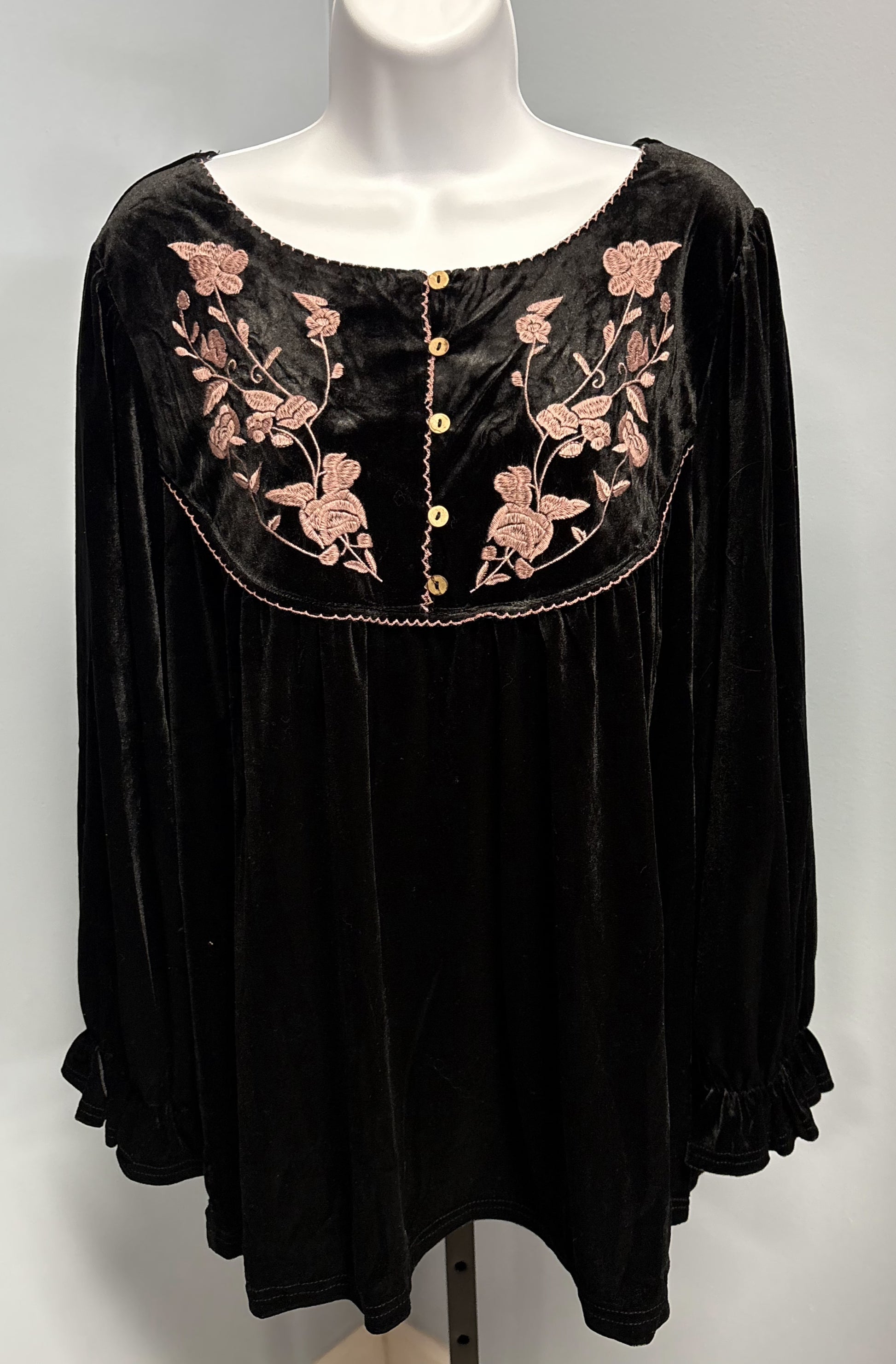 Elevate your wardrobe with the Floral Divinity Top by UMGEE, where luxurious velvet meets feminine elegance. This stunning piece features a delicate floral collar that adds a romantic touch, while the cinched wrist creates a flattering silhouette that defines your frame. The soft velvet fabric drapes beautifully against your skin, offering both comfort and sophistication. Perfect for special occasions or elevated everyday styling, this top transforms any look into something truly captivating.