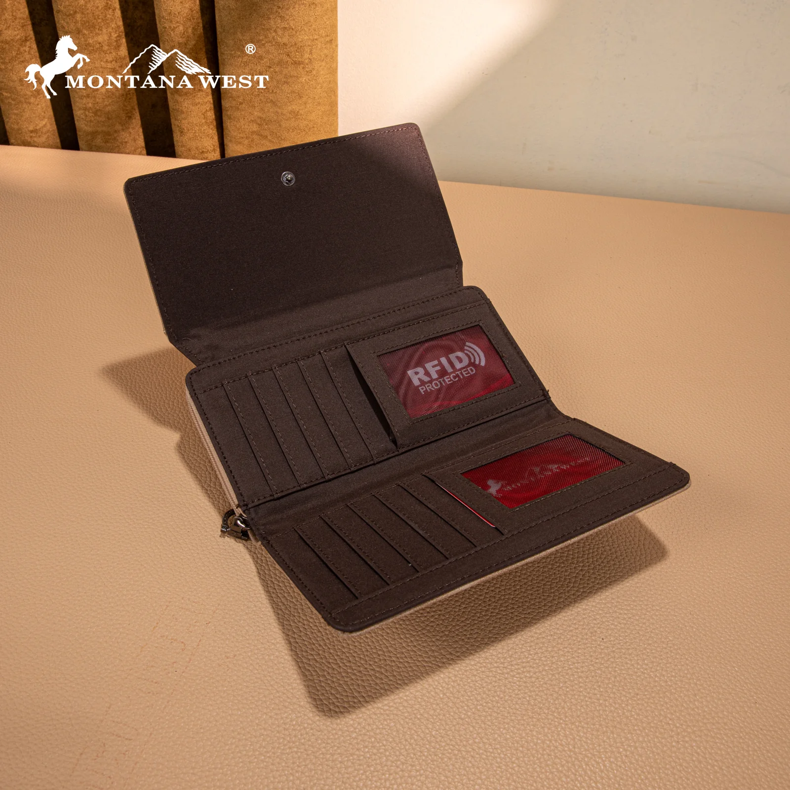 - Multiple card slots and 2 long slot compartments