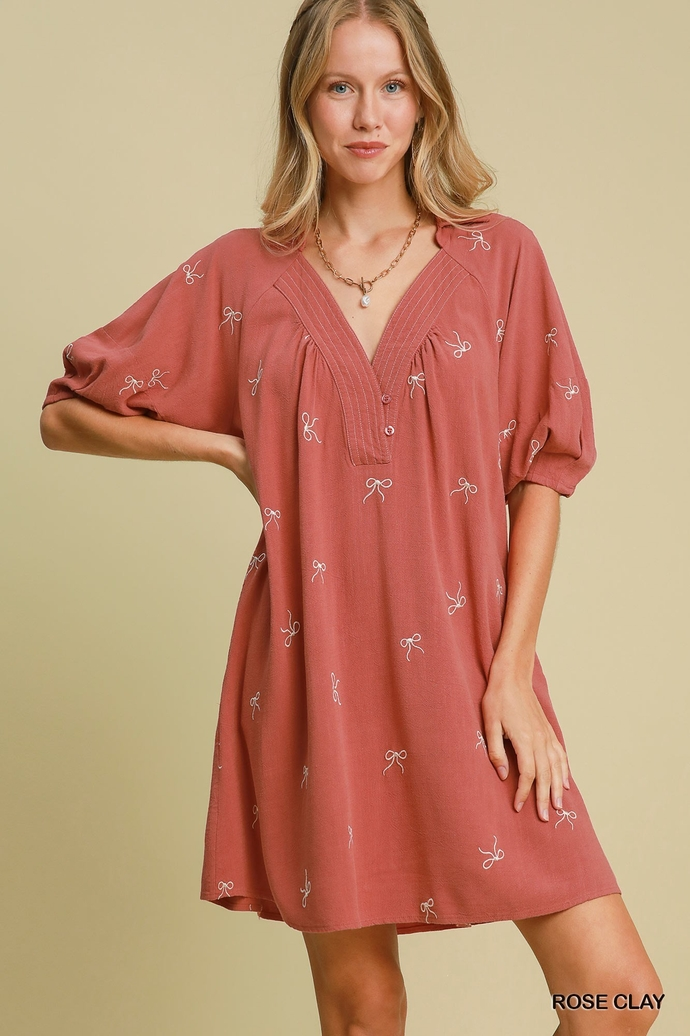 Experience effortless elegance with the That Bow Though Dress, crafted from a breathable linen-cotton blend for all-day comfort. Delicate embroidered details and charming puff sleeves add a feminine touch, while the relaxed Henley design ensures easy wear. Perfect for any occasion, its lightweight fabric keeps you cool without lining. Embrace style and comfort in one flattering piece that highlights your natural grace.