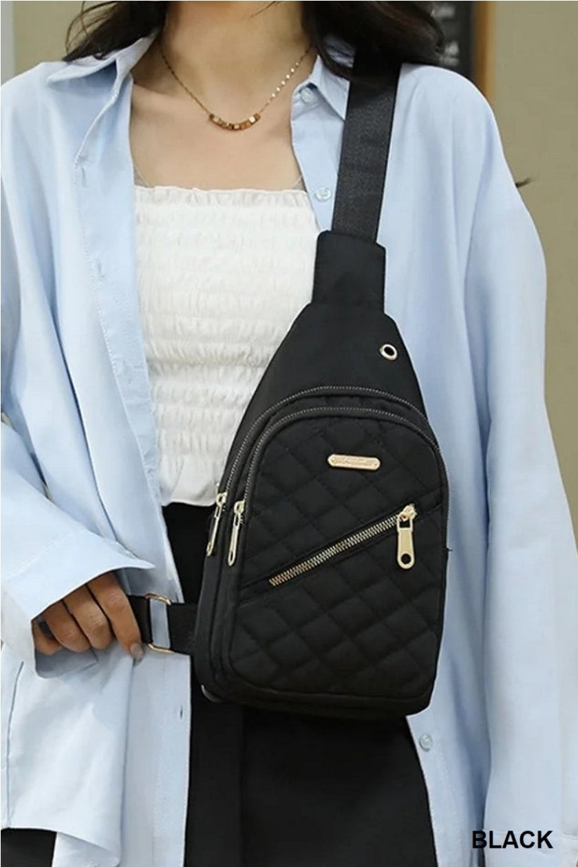 QUILTED MULTI-POCKET CROSSBODY SLING BAG